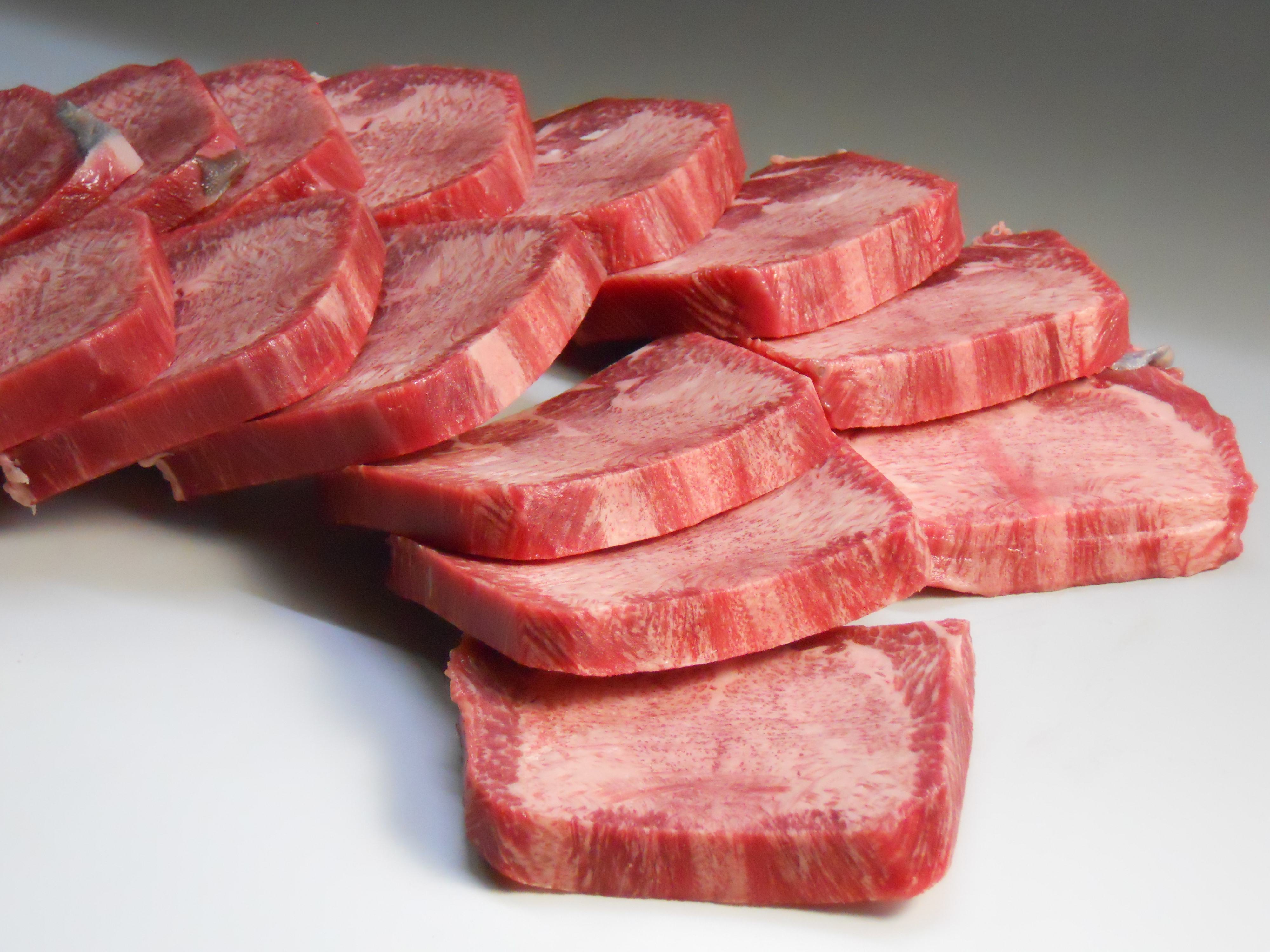 低カロリー」「高タンパク質」な牛たん。当店では安全、安心なチリ産を使用しております。中でも霜降り部分が多い高級たんを厚切りにし、瀬戸内天然塩・黒胡椒・旨み調味料・赤ワインで味付けし、徹底した温度理のもと、数日間低温熟成させます 。
