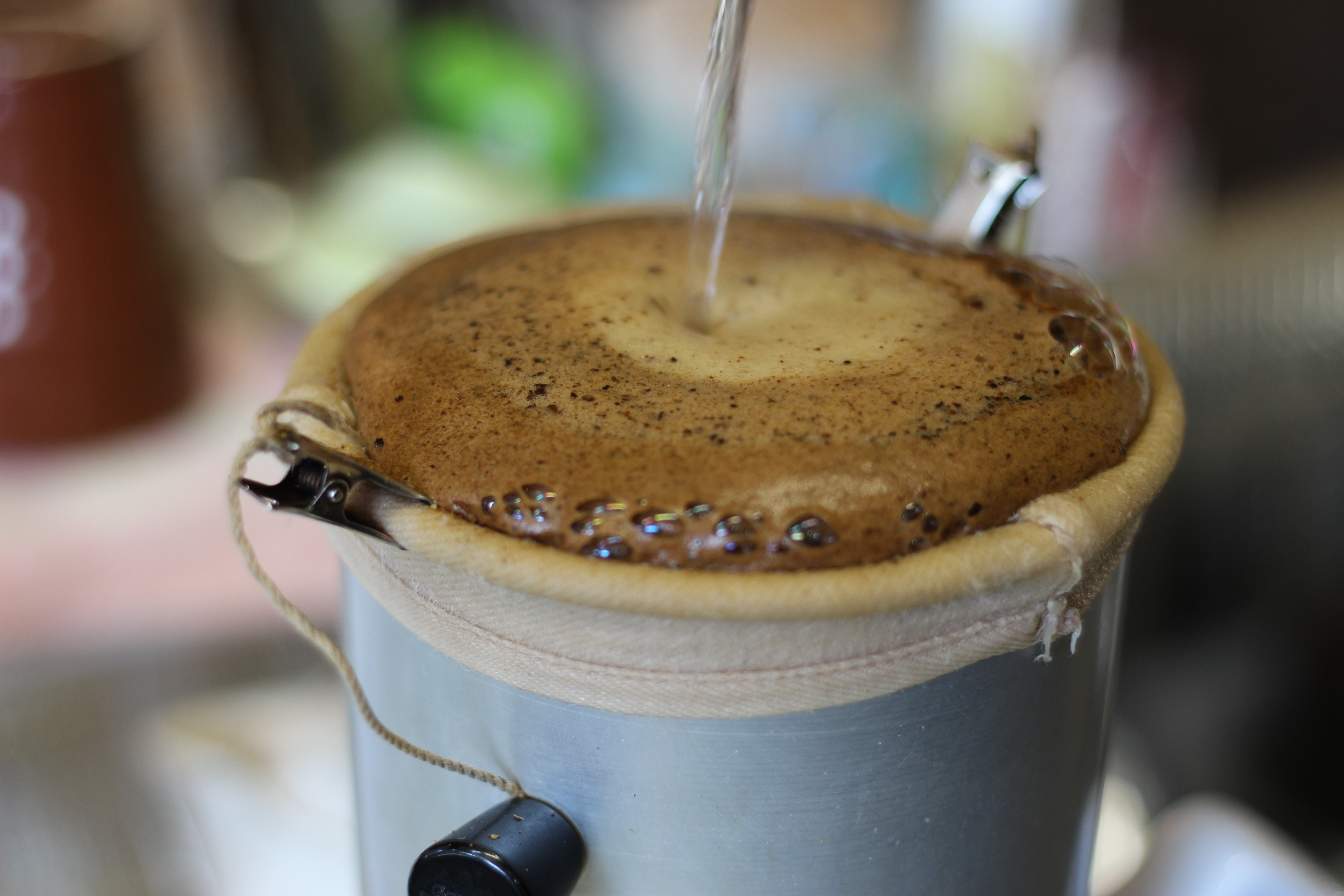 当店女将が、ネルドリップ抽出方にてホット珈琲とアイス珈琲を淹れております。ペーパードリップでは味わえない、その薫り高くコク深い珈琲を食後にお味わい下さいませ。